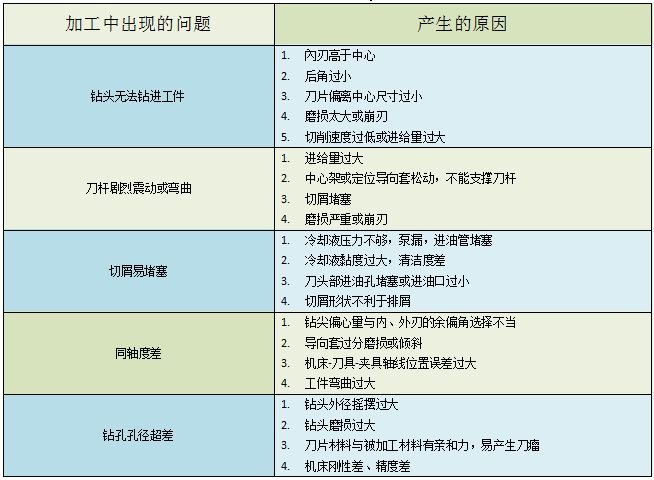 6. 槍鉆加工中常遇到的問題和產生的原因見下表: